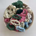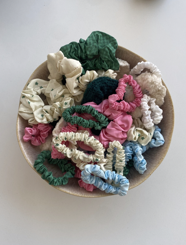 Kleines Haargummi aus kariertem Lyocell zum Zusammenbinden der Haare, handgefertigt in der Schweiz.