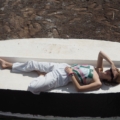 The Gomera scarf measures 80 x 80 cm. Made from lyocell, a natural wood-fiber-based material, it can be worn in a variety of ways.